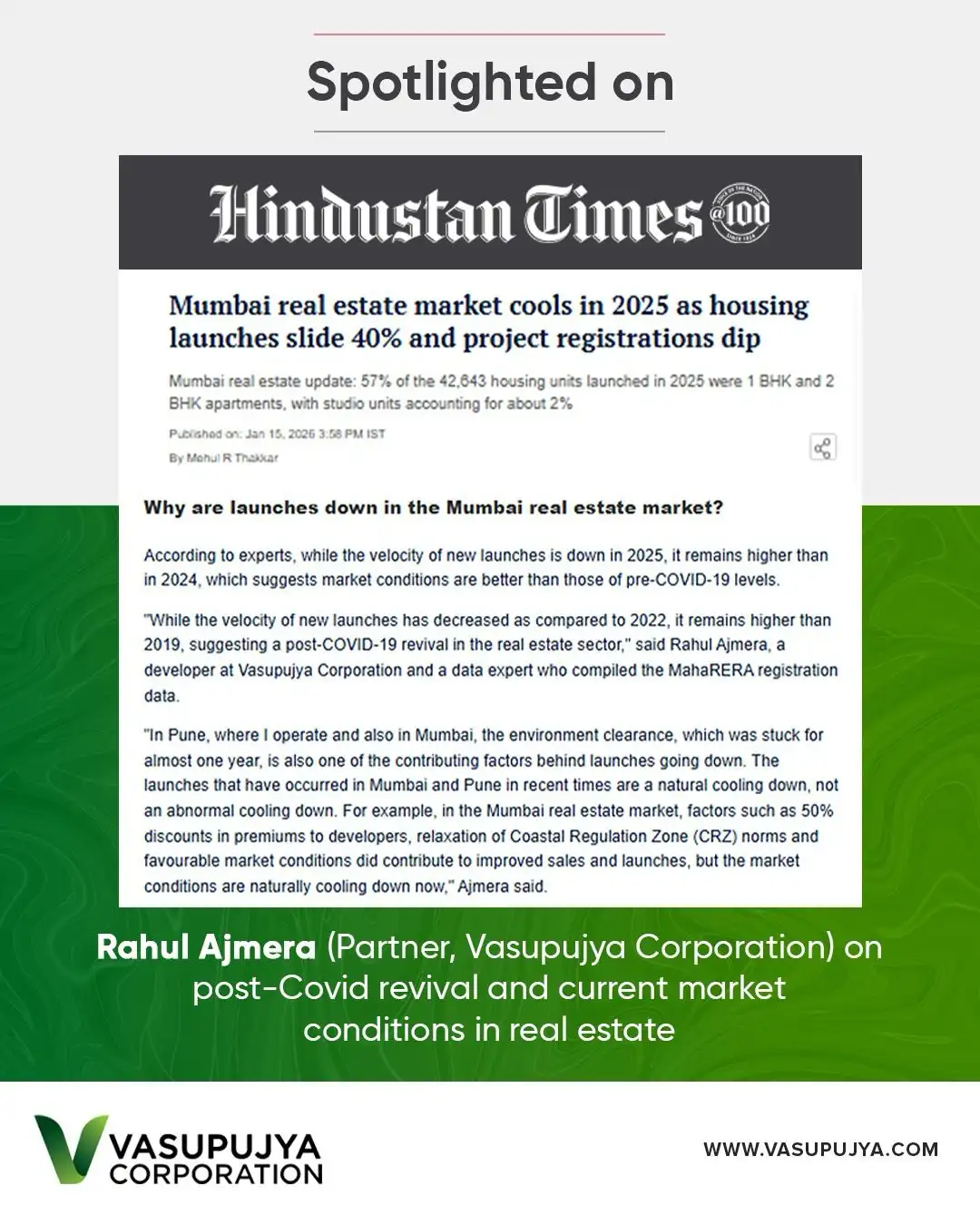 Rahul Ajmera, Partner at Vasupujya Corporation, shares expert insights on the post-COVID real estate revival and evolving market conditions in a recent Hindustan Times feature.